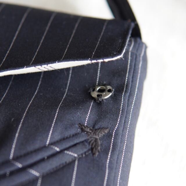 テーラードスーツに使われる素材に拘り作成したショルダーバッグ。
