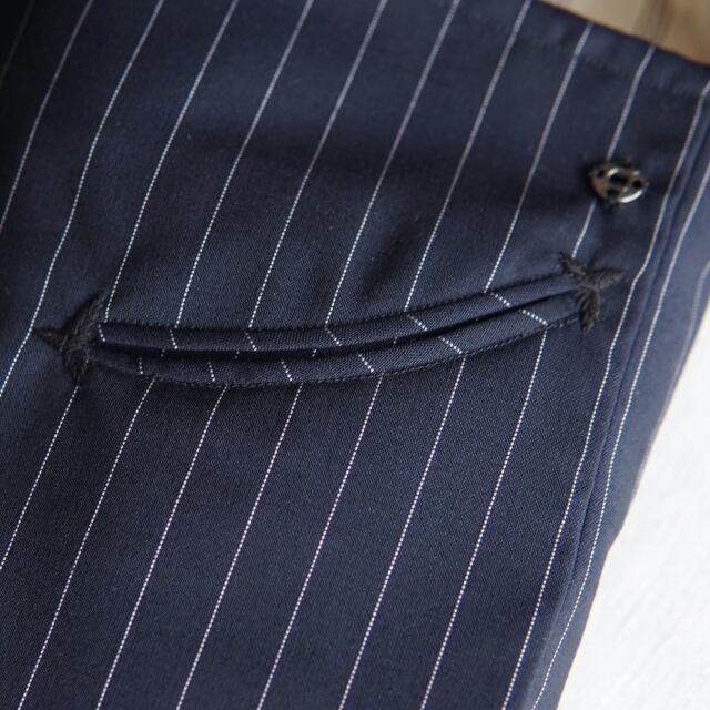 表地にはスーツ生地、裏地には「縞スレーキ」と呼ばれるコットン素材を使用。