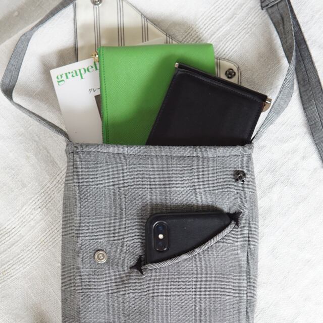テーラードスーツに使われる素材に拘り作成したショルダーバッグ。
