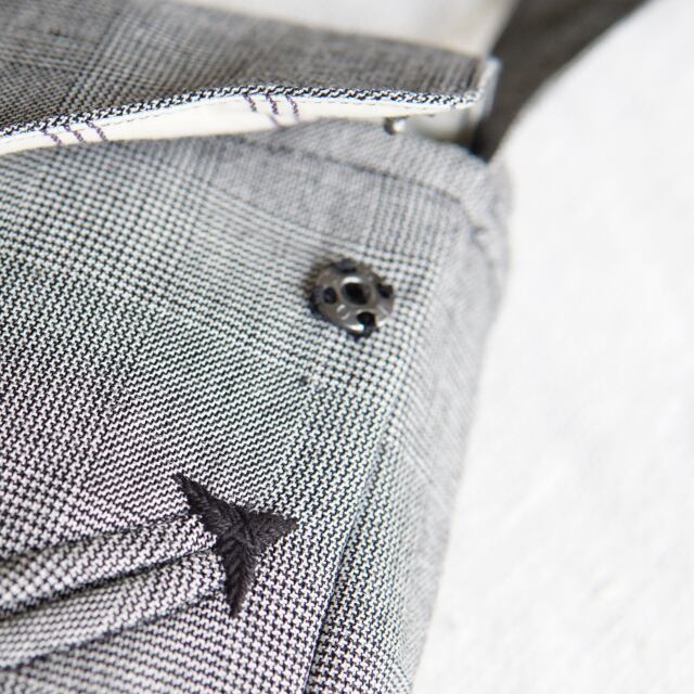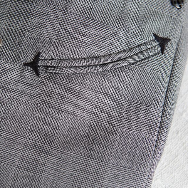 表地にはスーツ生地、裏地には「縞スレーキ」と呼ばれるコットン素材を使用。