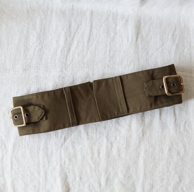 グルカパンツの特徴的なウエスト部分をベルトとして作成しました。